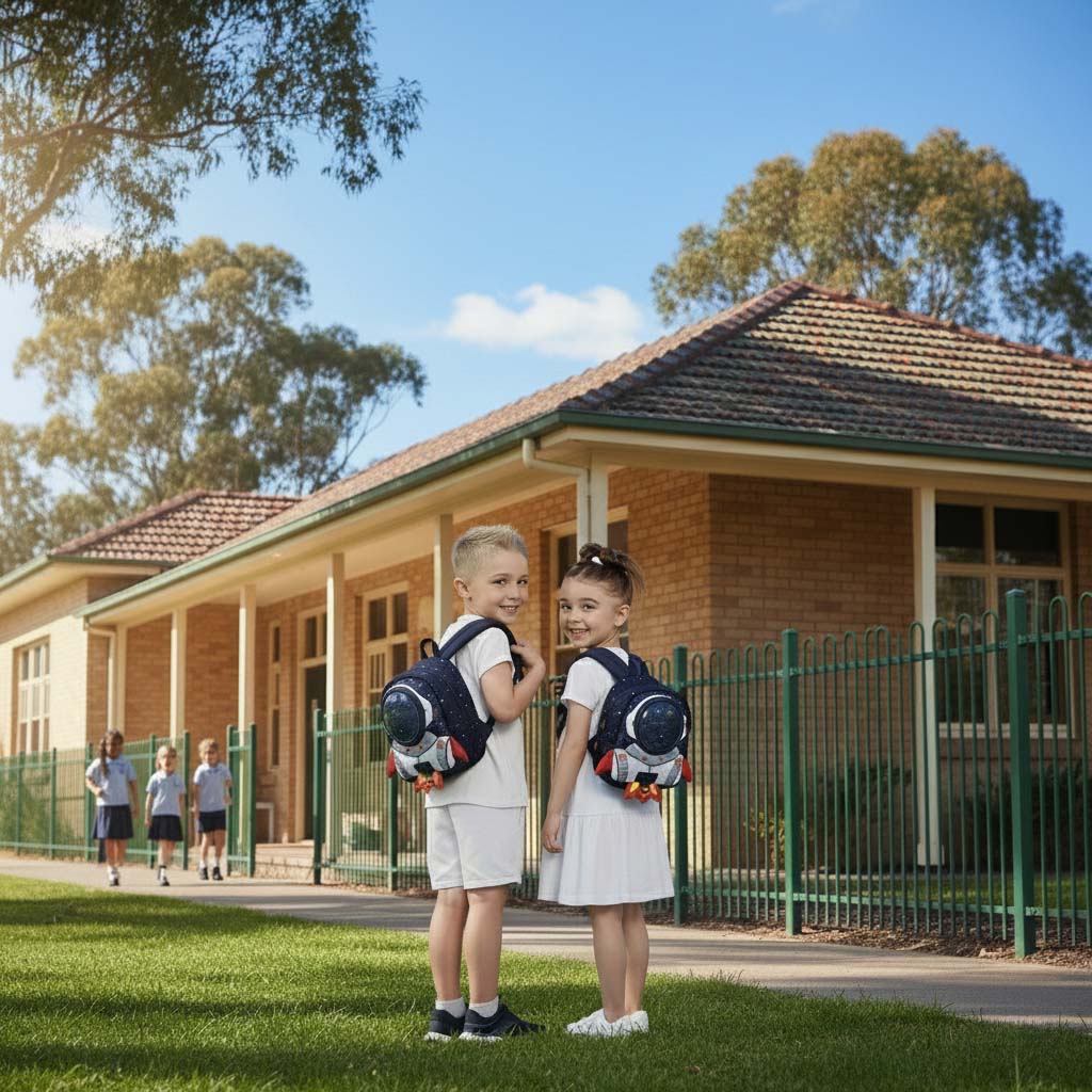 Blast off on a galactic adventure with the DREAMY ROCKETEER⢠children's backpack! This adorable knapsack features a spaceman soaring through the ga...