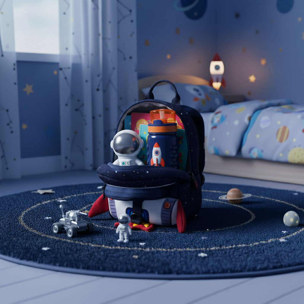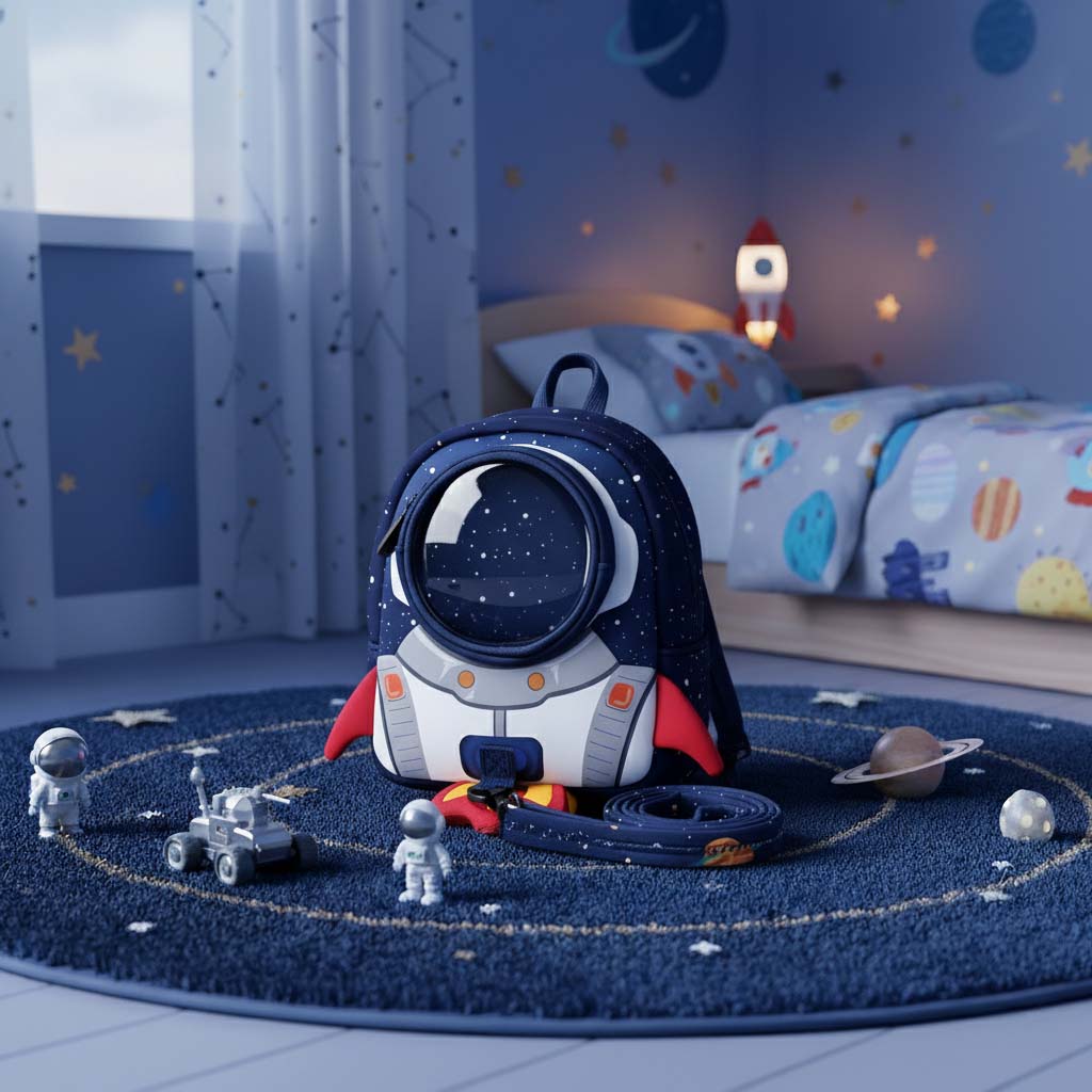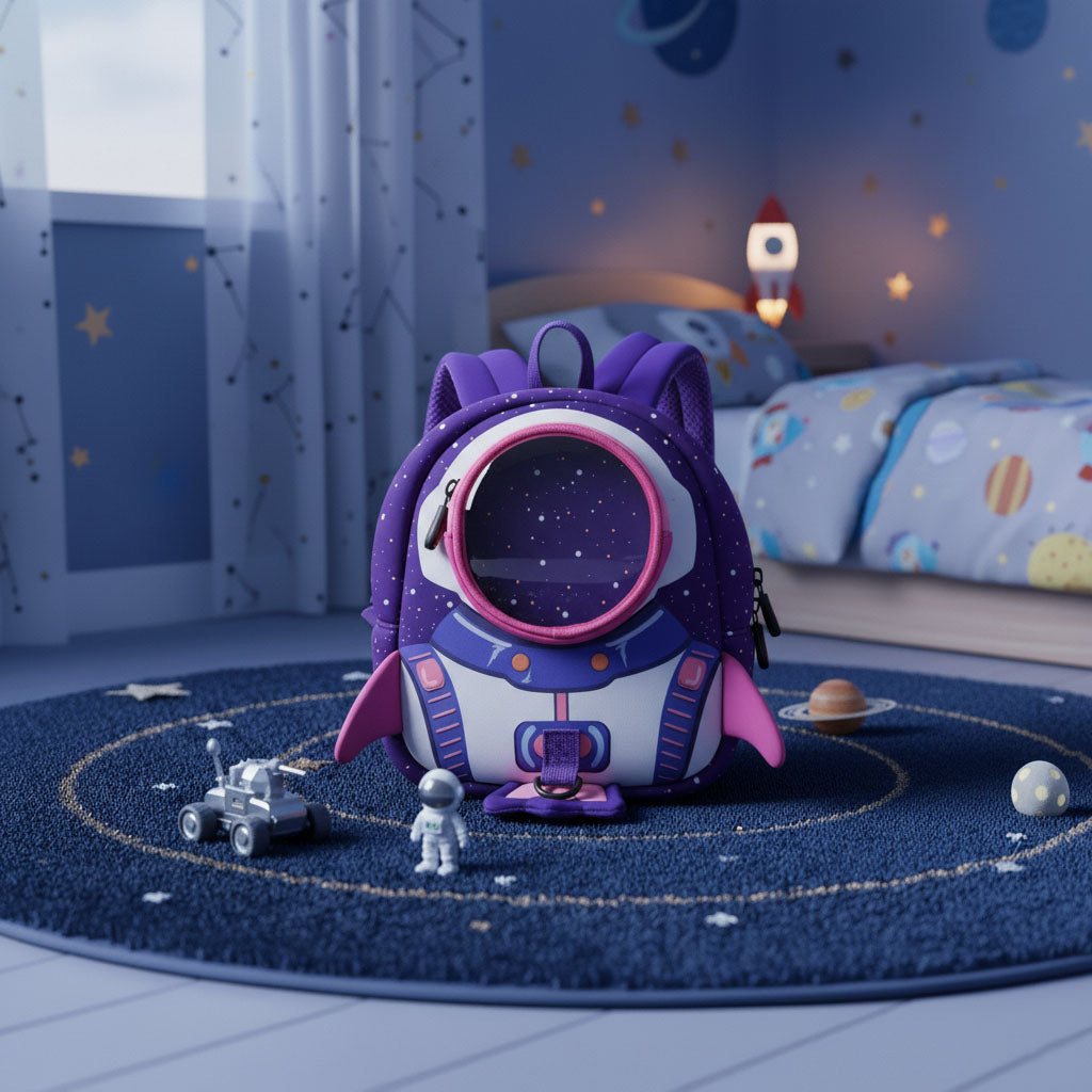 Blast off on a galactic adventure with the DREAMY ROCKETEER™ children's backpack! This adorable knapsack features a spaceman soaring through the galaxy. Your little astronaut's safety is ensured with a cute detachable pocket and safety leash! So strap in, and let's journey into the unknown! 🚀