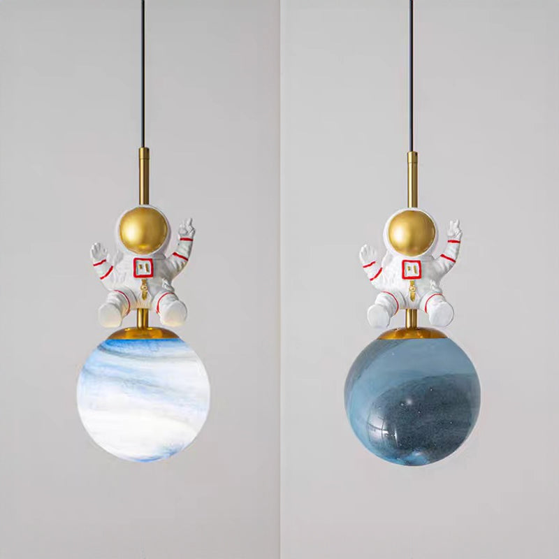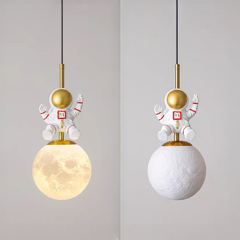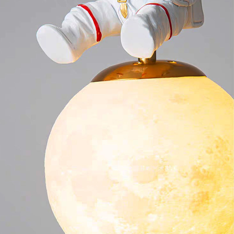 Let your child take charge of the universe with our MOONLIT MAESTRO ceiling lamp. With a delightful astronaut conducting music in space, they can select their favorite planet - Moon, Earth, or Mars - for an intergalactic adventure in their room!