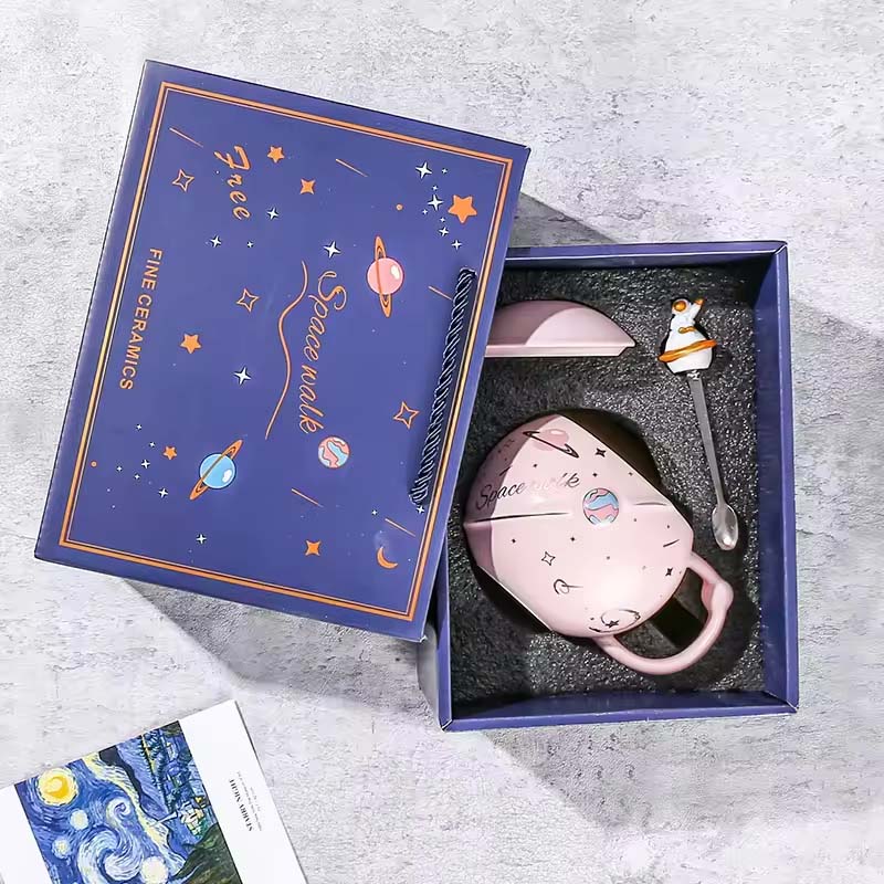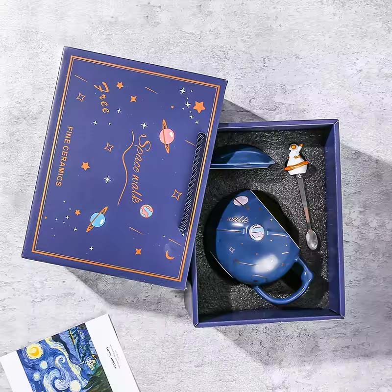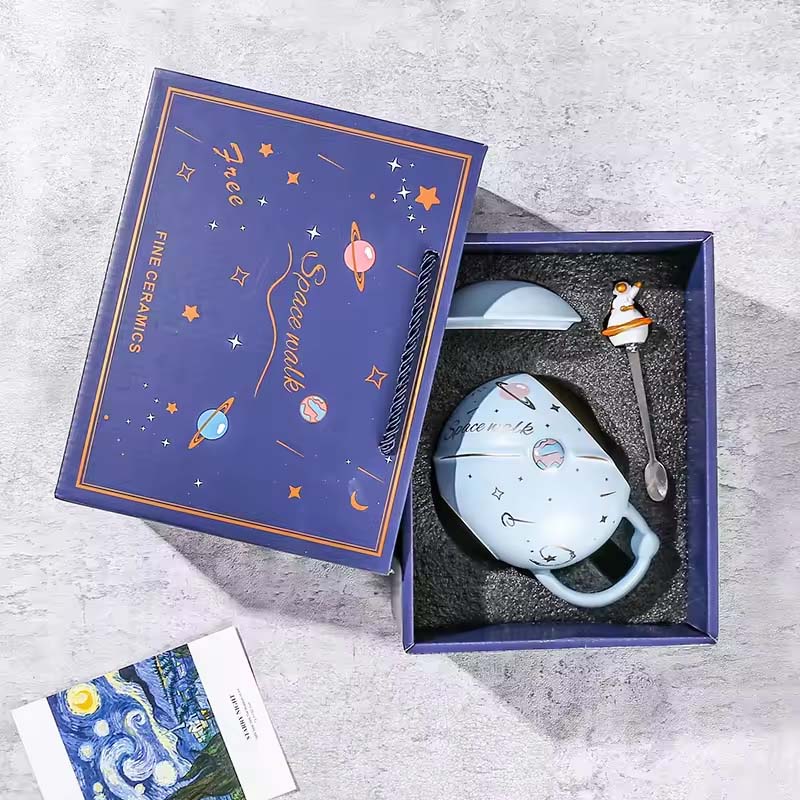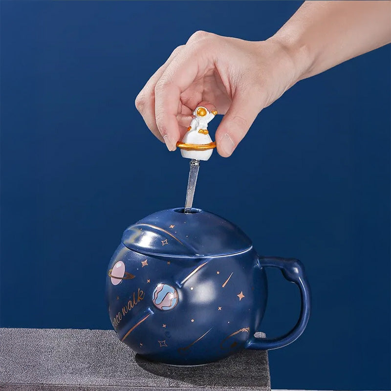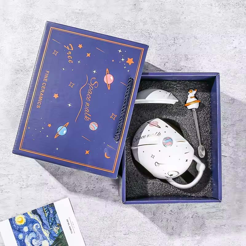 Stir up wonder with a stainless steel spoon tipped with the astronaut-on-Saturn design! Crafted from high-quality ceramic, this mug and spoon duo is durable for daily delights. It’s the perfect pair for tasty takeoffs!